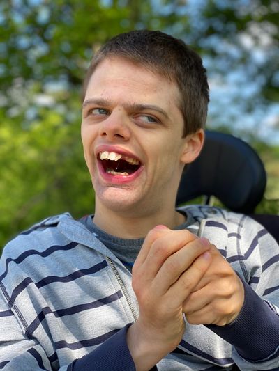 Tobias benötigt eine 24/7 Betreuung. Für uns Eltern und Betreuer stellt sich die Herausforderung mit viel Geduld und Zuwendung immer neu herauszufinden, welche Bedürfnisse er gerade hat, da seine Fähigkeiten zur Kommunikation sehr eingeschränkt sind.